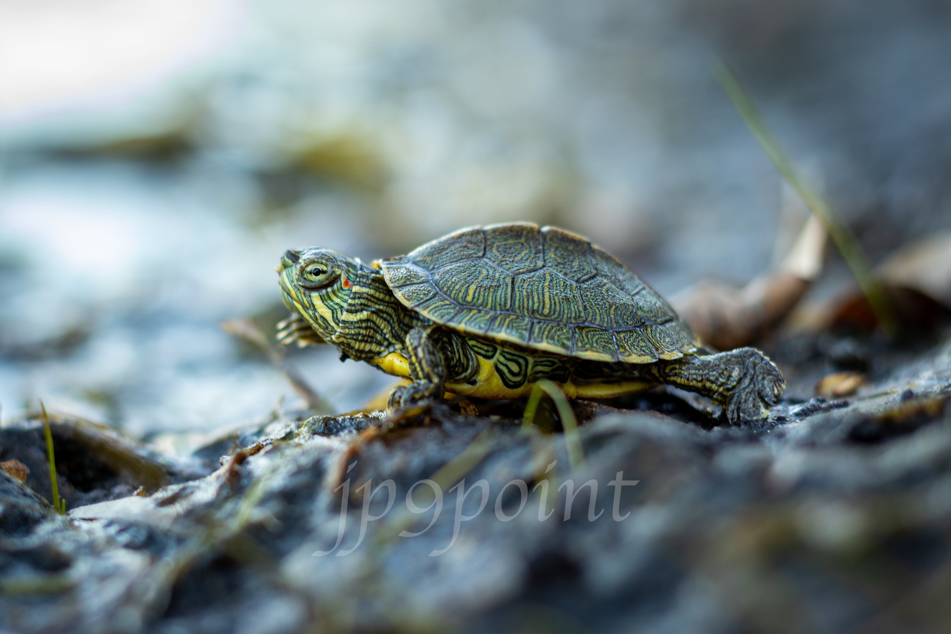 Baby turtle on its parent in Central Park, New York.